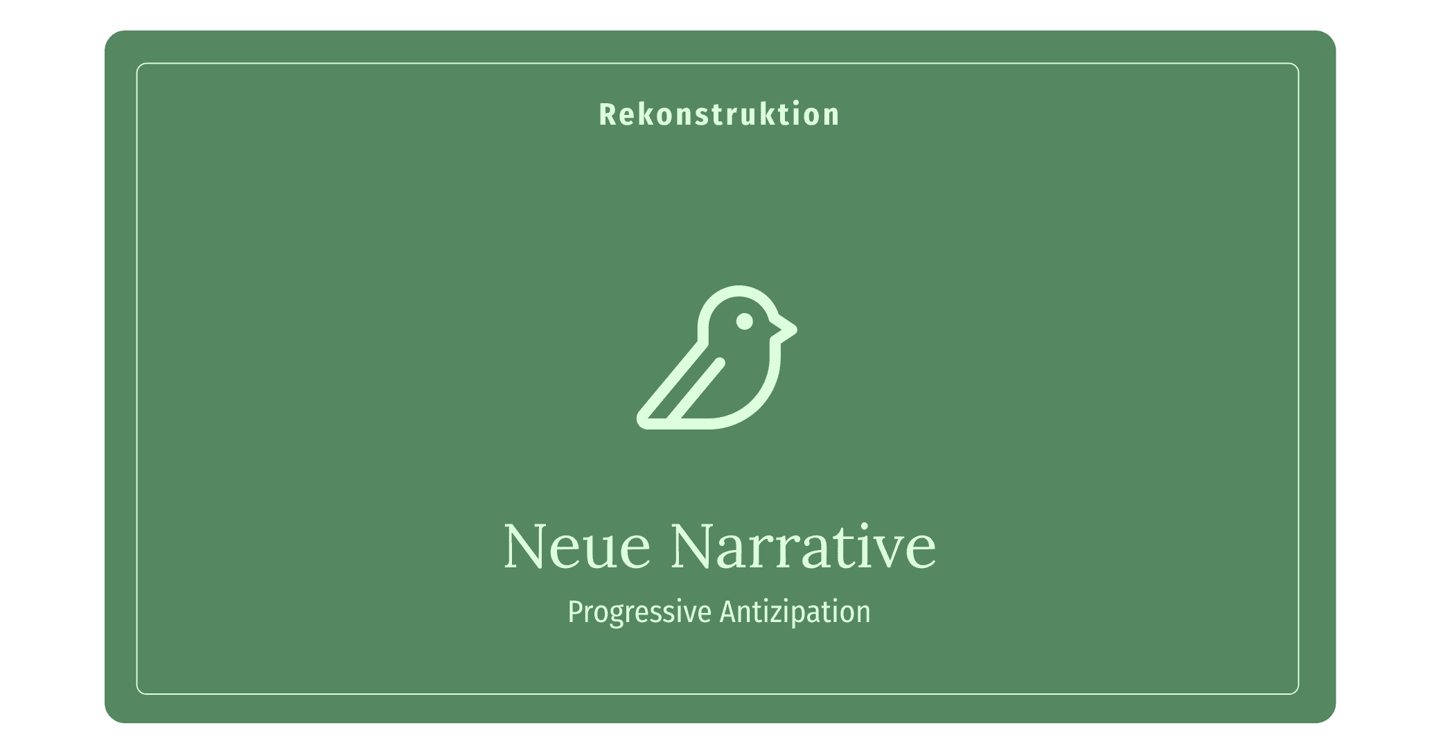 Nach der kritischen Reflexion und Dekonstruktion bestehender Mythen und Werte werden hier bewusst alternative Erzählungen entwickelt, die emotionale Resonanz schaffen und motivierende Orientierung bieten. Grundlage sind die entwickelten Szenarien.